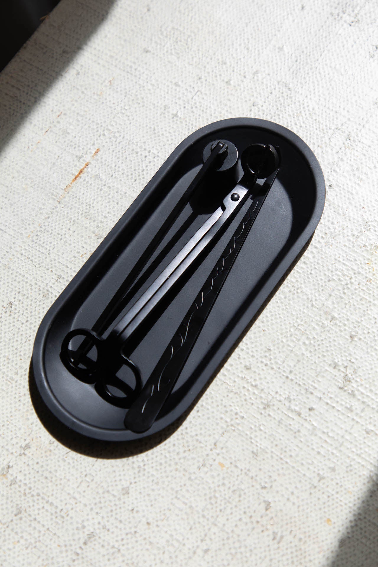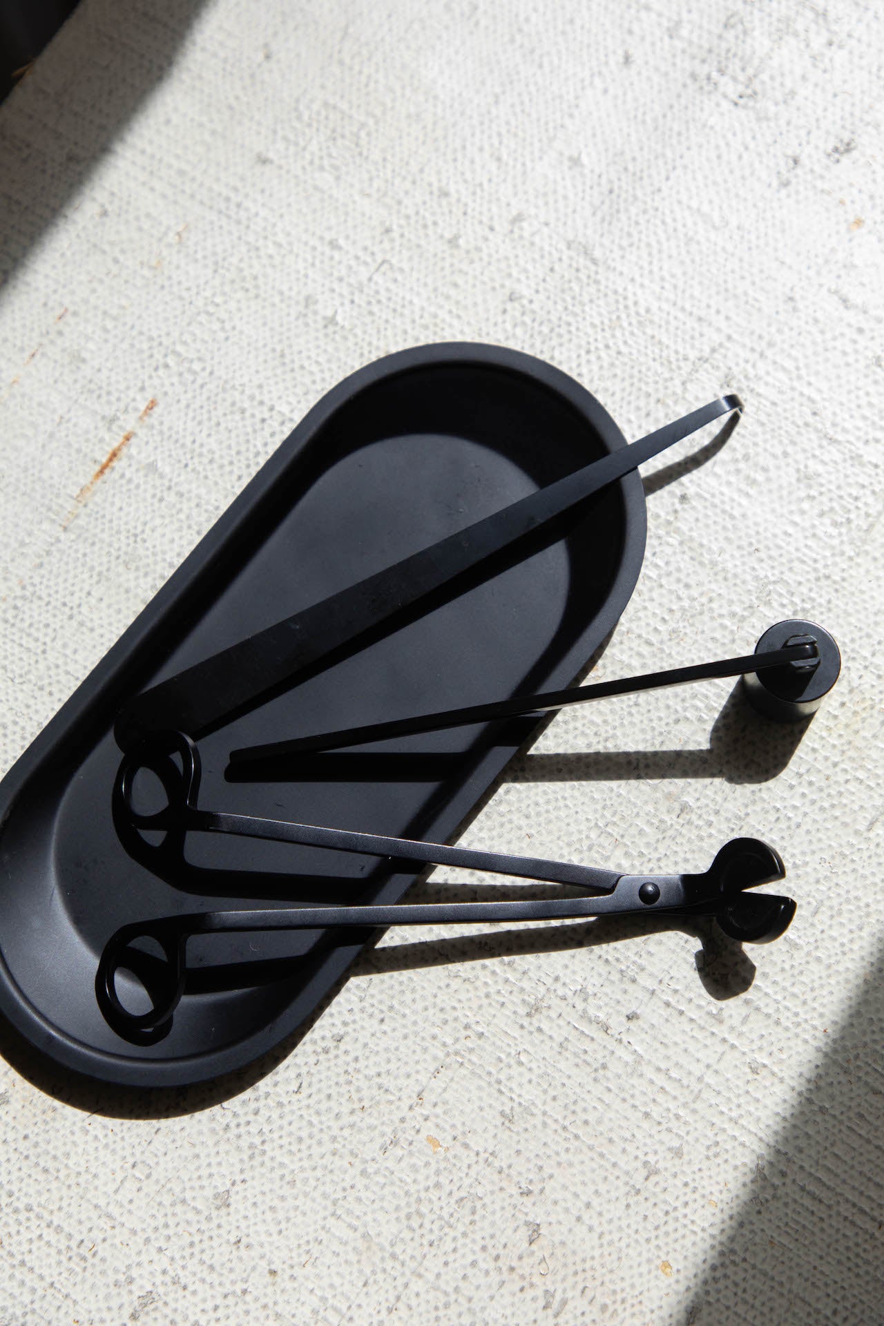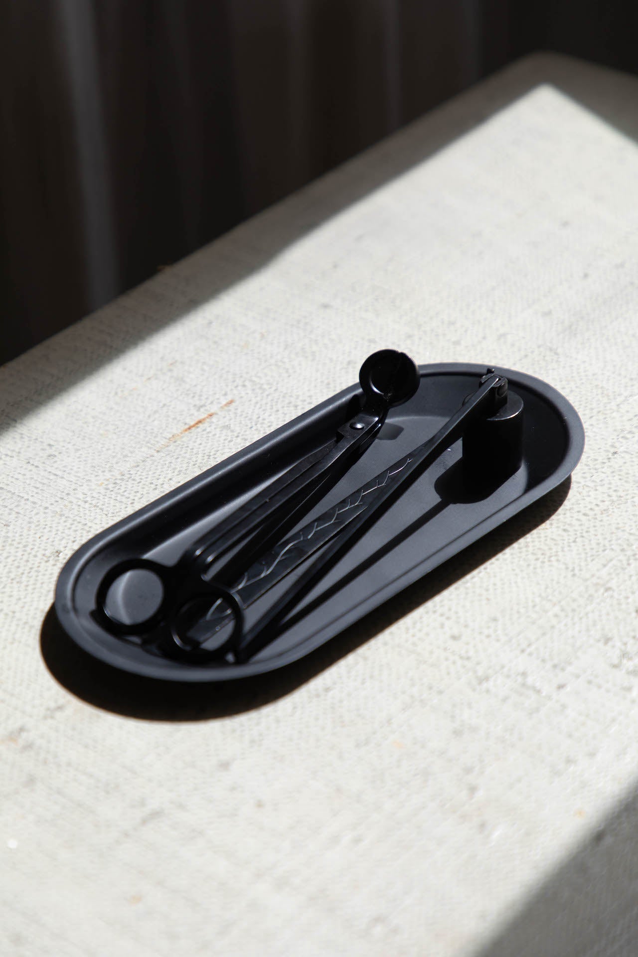 1 wick trimmer, 1 wick dipper, 1 snuffer, 1 tray